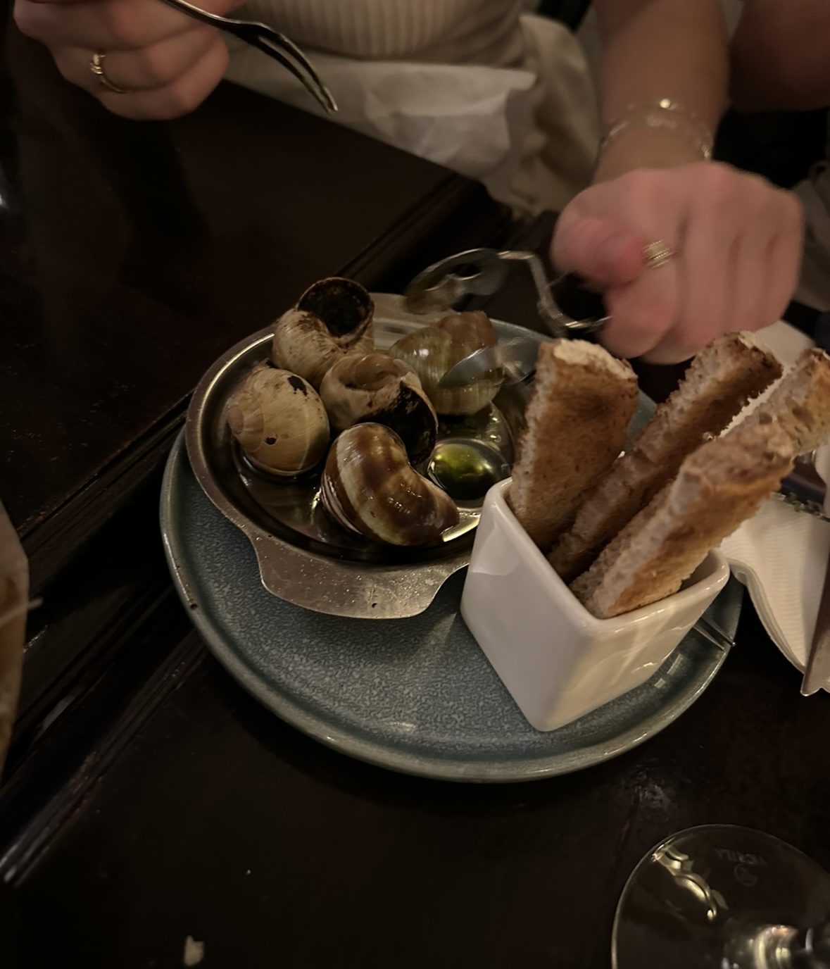 Then we headed to dinner where we obviously had to try escargo. Which after many years of taking french in middle and high school, this is something I knew I had to try. I will say it was different but I enjoyed it!