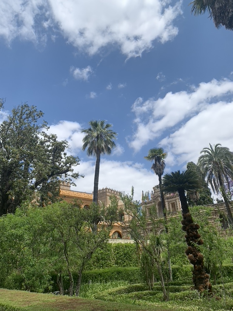 El próximo día el grupo visitamos las Reales Alcázares, solo algunas calles de nuestro hostel. Las Reales Alcázares son un gran e impresionante área que la mayoría fue construida cuando los Moros y christianos vivían juntos y tenían “convivencia” así que los edificios y architecture tienen aspectos tradicional de moros como tallas de yeso, fuentes de agua, y losas similar a La Alhambra. Además, las habitaciones reales y pinturas/ obras de arte cristianas. También hay un centro de comercio donde todo el comercio ocurría en esos días. Me pareció interesante y estratégico que se coloca junto al palacio real y creo que la colocación es un mensaje de quien es el jefe y quien recibía veinte porcentaje de los bienes. Me sorprendió la combinación de culturas y el marcado contraste cuando entramos al edificio cristiano más nuevo. También disfruté en los jardines y me enamoré de los hermosos árboles con flores moradas únicos de Sevilla. Después de pasamos tiempo en los reales alcázares, comí mi primera paella para almuerzo. Usualmente, tomamos dos a tres horas para comer porque de la cultura en España, los restaurantes son relajados y nadie está apurado mucho. Después de llenarnos de comida, exploramos la Catedral de Sevilla, la tercera catedral más larga en el mundo. La Catedral es muy diferente de los otros monumentos y catedrales y mis cosas favoritas eran el campanario y el altar mayor.