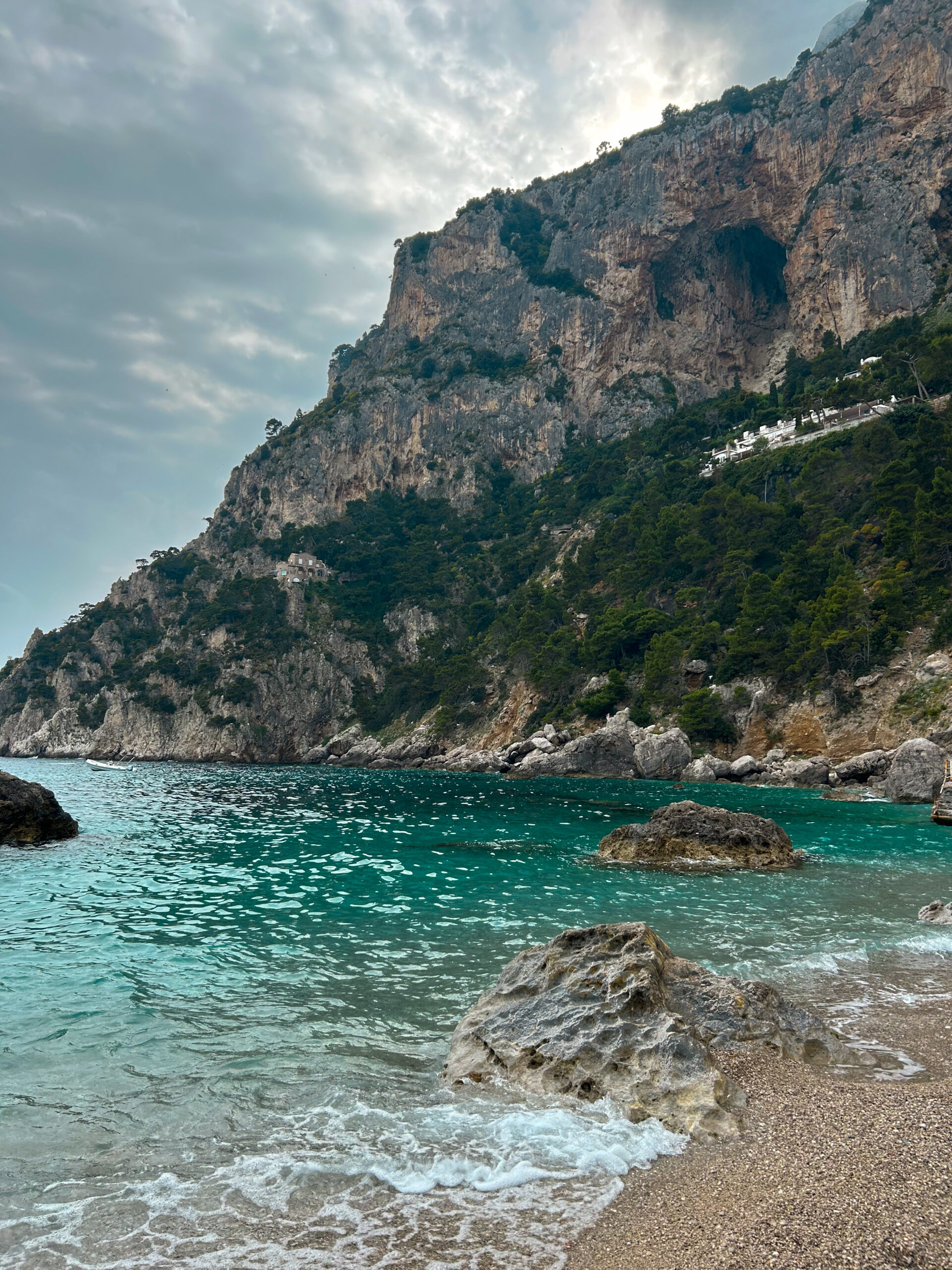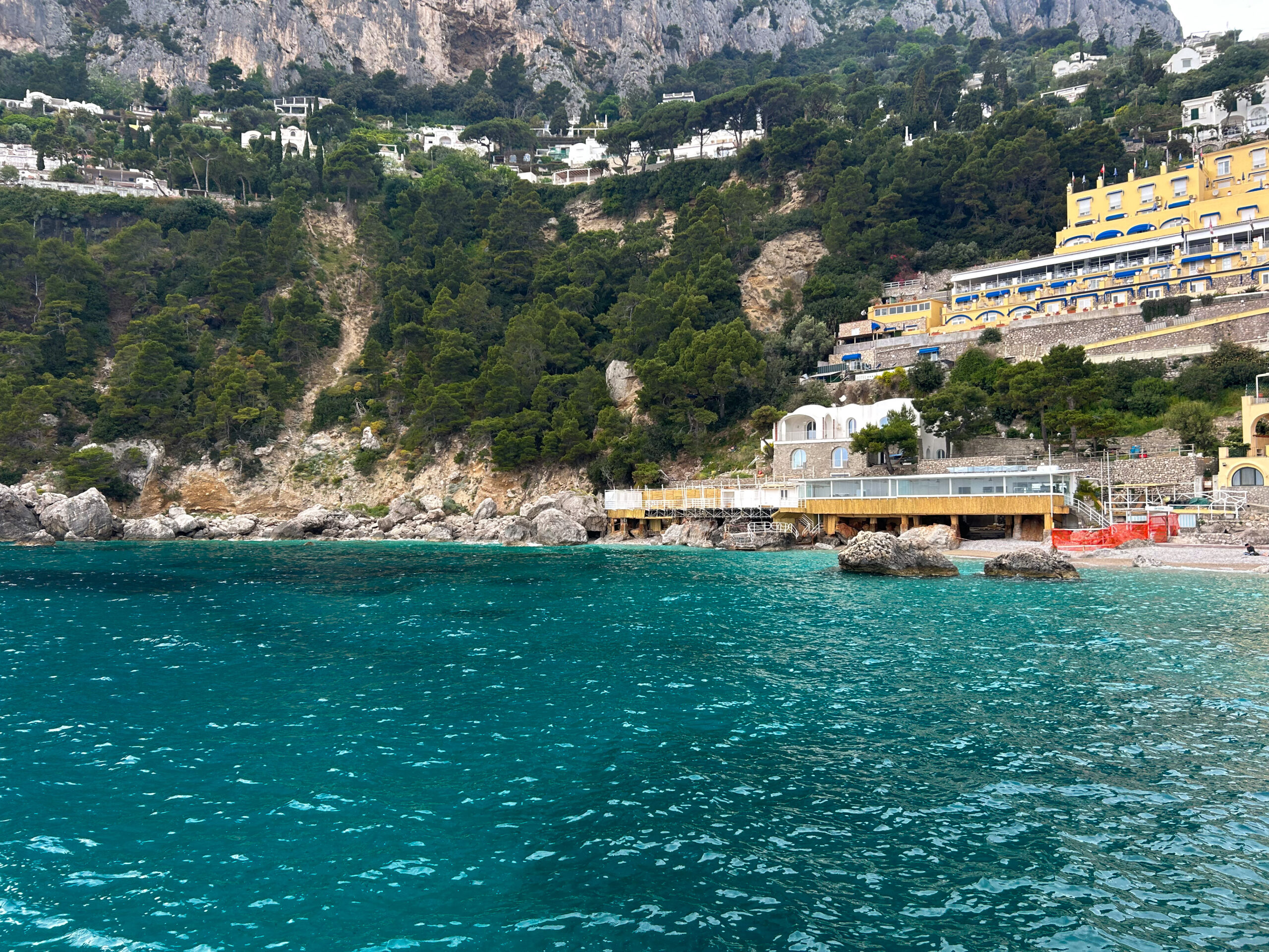 My absolute favorite part of this trip happened during our free time when my classmates and I decided to take a ferry to the island of Capri. We spent several hours on the island, visiting the town of Marina Piccola and then hiking back up the island to get back to the ferry. Even if the weather was slightly gloomy when we went, the water and hills were amazing and we had so much fun having a “beach day.”