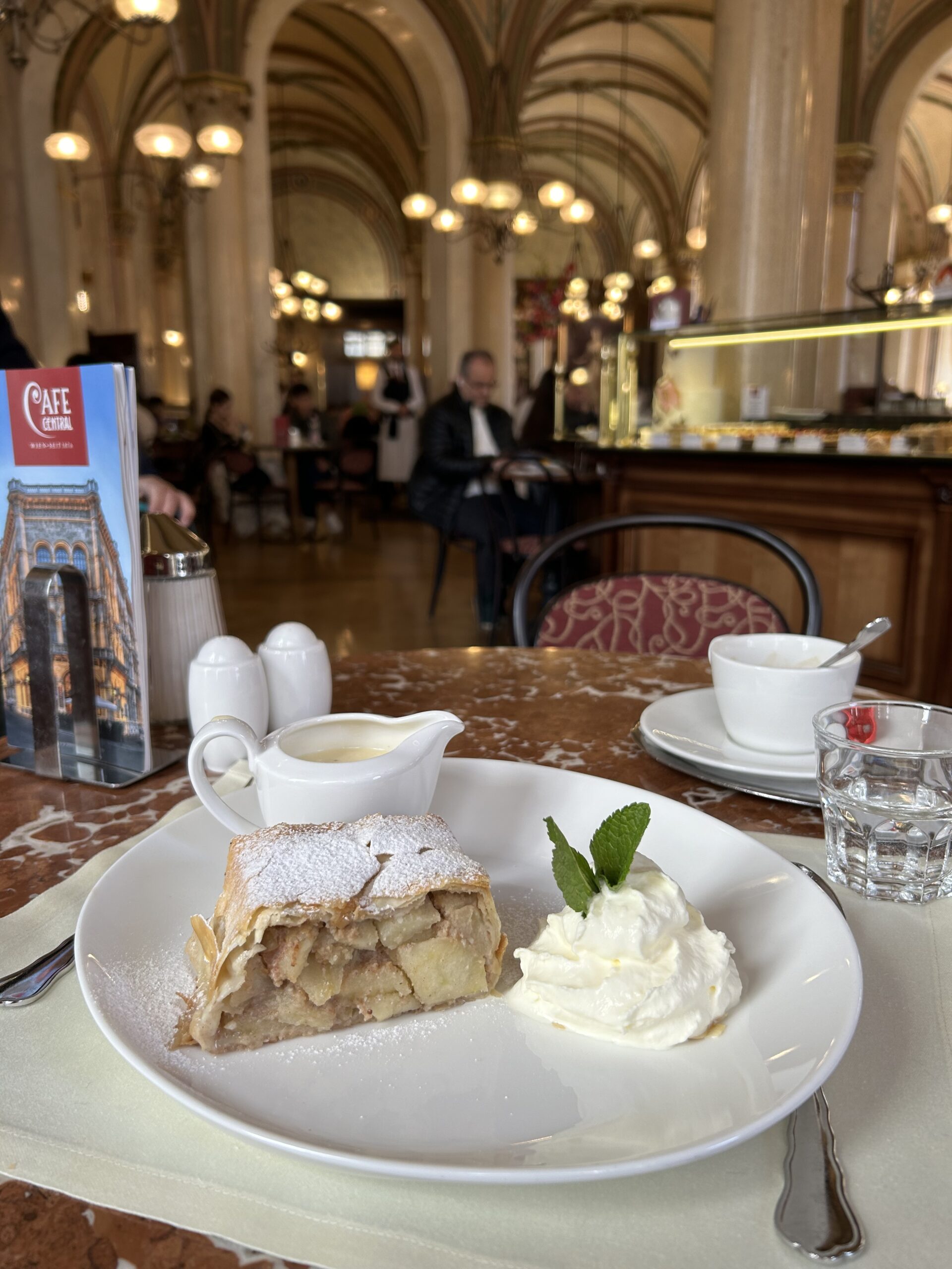If you’ve ever been to Vienna before, or even seen travel brochures/magazines/social media posts about it, you know that Cafe Central is one of the most popular cafes to visit. Famous for its apple strudel and Sacher torte, Cafe Central is one of those touristy places that you just have to brave the line for. I waited in line for about 25-30 minutes and it was one of the best cafe experiences I have ever had. I ordered the melange, a Viennese coffee drink similar to a cappuccino, and, of course, the apple strudel.
